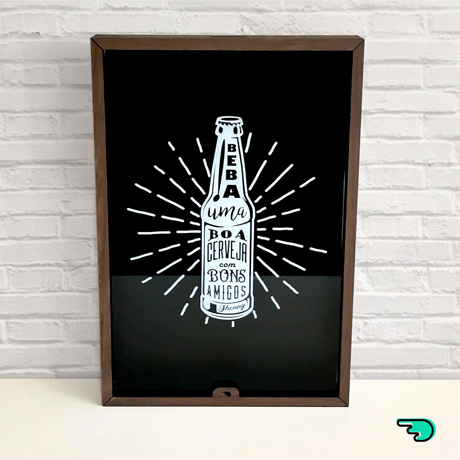 Pode chamar a galera pra aquela cervejinha! Porque com essa lindeza você tá bonito na foto. Feito em MDF com vidro 3mm que pode ser personalizado.